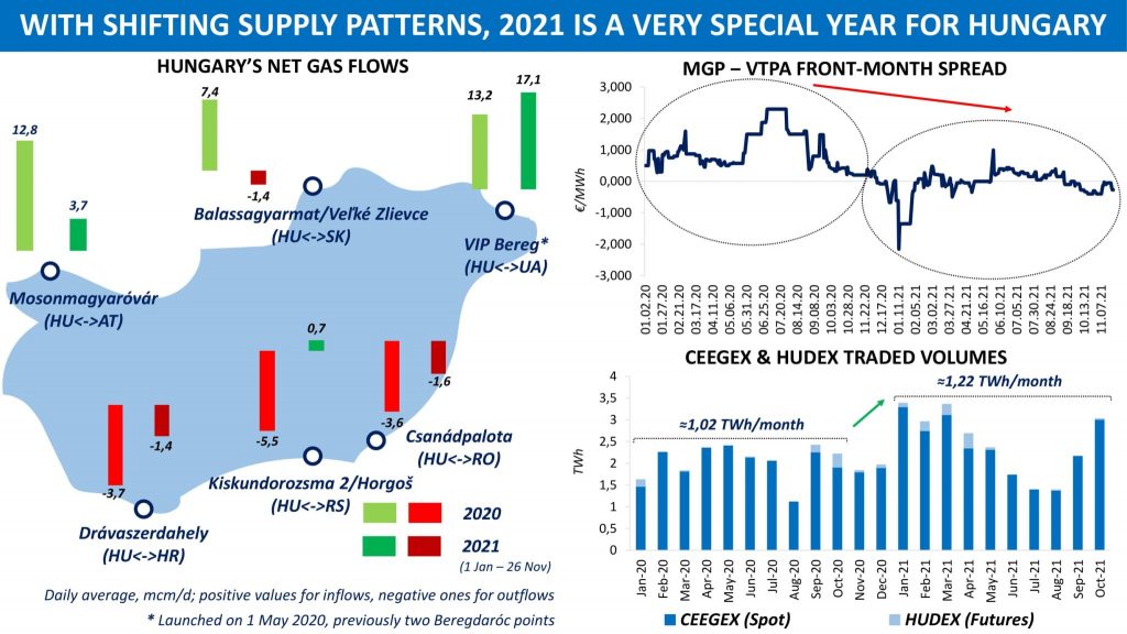 For most players in the European gas market, 2021 will be remembered first and foremost as a year of unprecedentedly high level of prices. But there are parts of Europe for which this year has brought not only record gains on hubs but also a fundamental transformation of transport infrastructure, resulting in a reshaping of flow patterns. This year’s developments in Central Europe make it stand out from the rest, with Hungary representing a special case in that regard.
