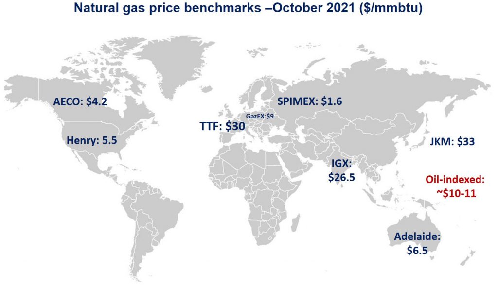 In Europe, TTF prices exploded hitting an historic intra-day high of $54/mmbtu in the beginning of the month, while averaging at $30/mmbtu over the month -up by 40% compared to its September levels.