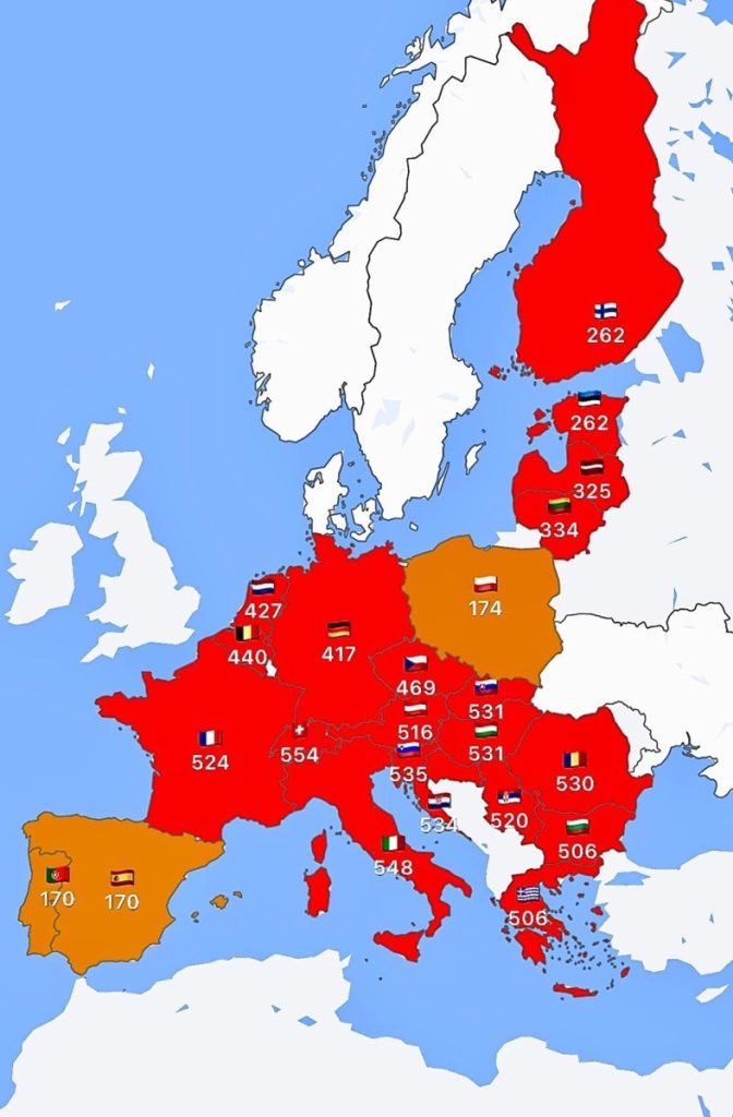 Interesting to note the Iberian Peninsula’s electricity price is ~2/3 lower than mainland EU – which are now paying 6x the price at the start of this year. Why ?