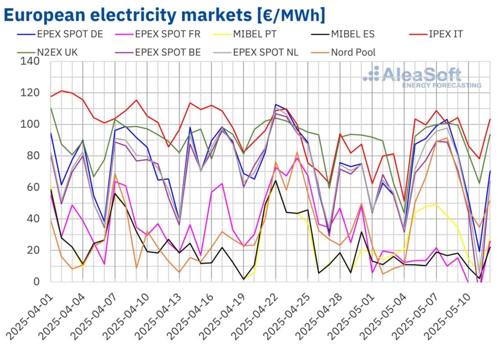 In the second week of May, prices in most major European electricity markets increased compared to the previous week, except in Spain and France. Over the weekend several markets registered negative hourly prices, with an all-time record in Spain, as well as the lowest prices since at least 2023 in other markets. In France and Belgium there were negative daily […]