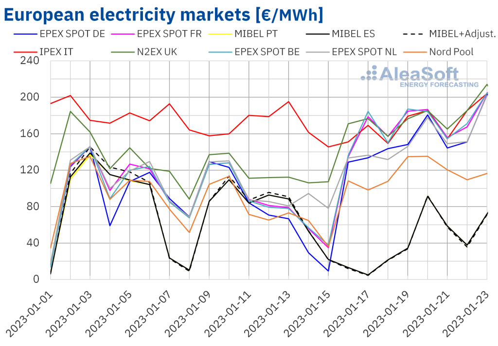 In the third week of January, prices of most European electricity markets increased compared to the previous week due to the increase in demand associated with the drop in temperatures. However, in the Spanish, Portuguese and Italian markets, where the wind energy production increased, price declines were registered. On the other hand, TTF gas futures reached a settlement price of […]