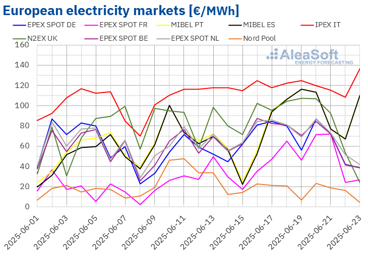 In the third week of June, prices in most major European electricity markets rose compared to the previous week and exceeded €70/MWh. In the British, Iberian and Italian markets, prices exceeded €100/MWh on several days. The rise in gas prices, whose futures marked their highest settlement price since April 3, was one of the causes of the upturn, together with […]