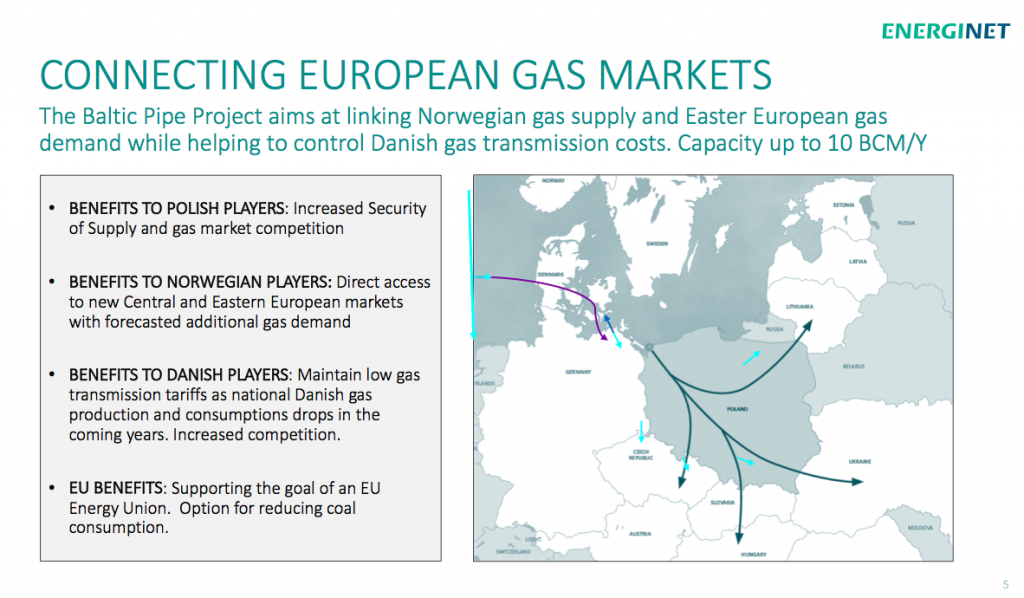 The Baltic Pipe Project aims at linking Norwegian gas supply and Eastern European gas demand while helping to control Danish gas transmission costs. Source: Jeppe Danø, Energinet