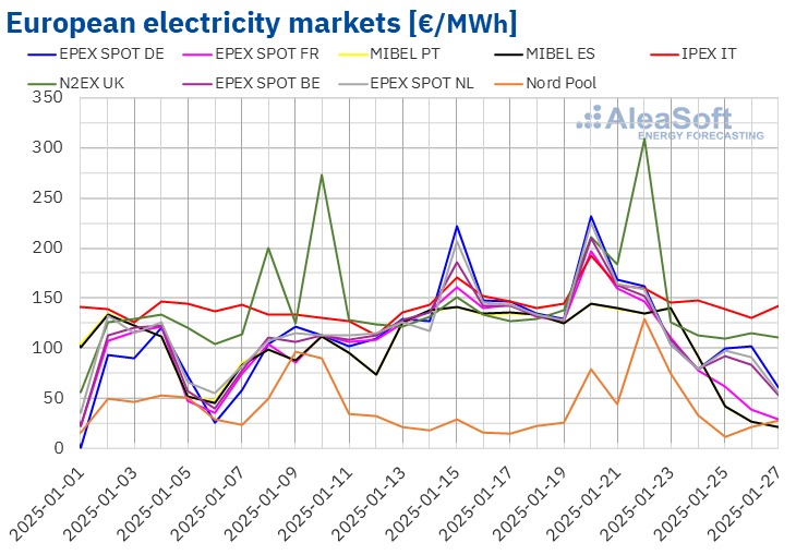 Prices in most major European electricity markets drop to below €85/MWh