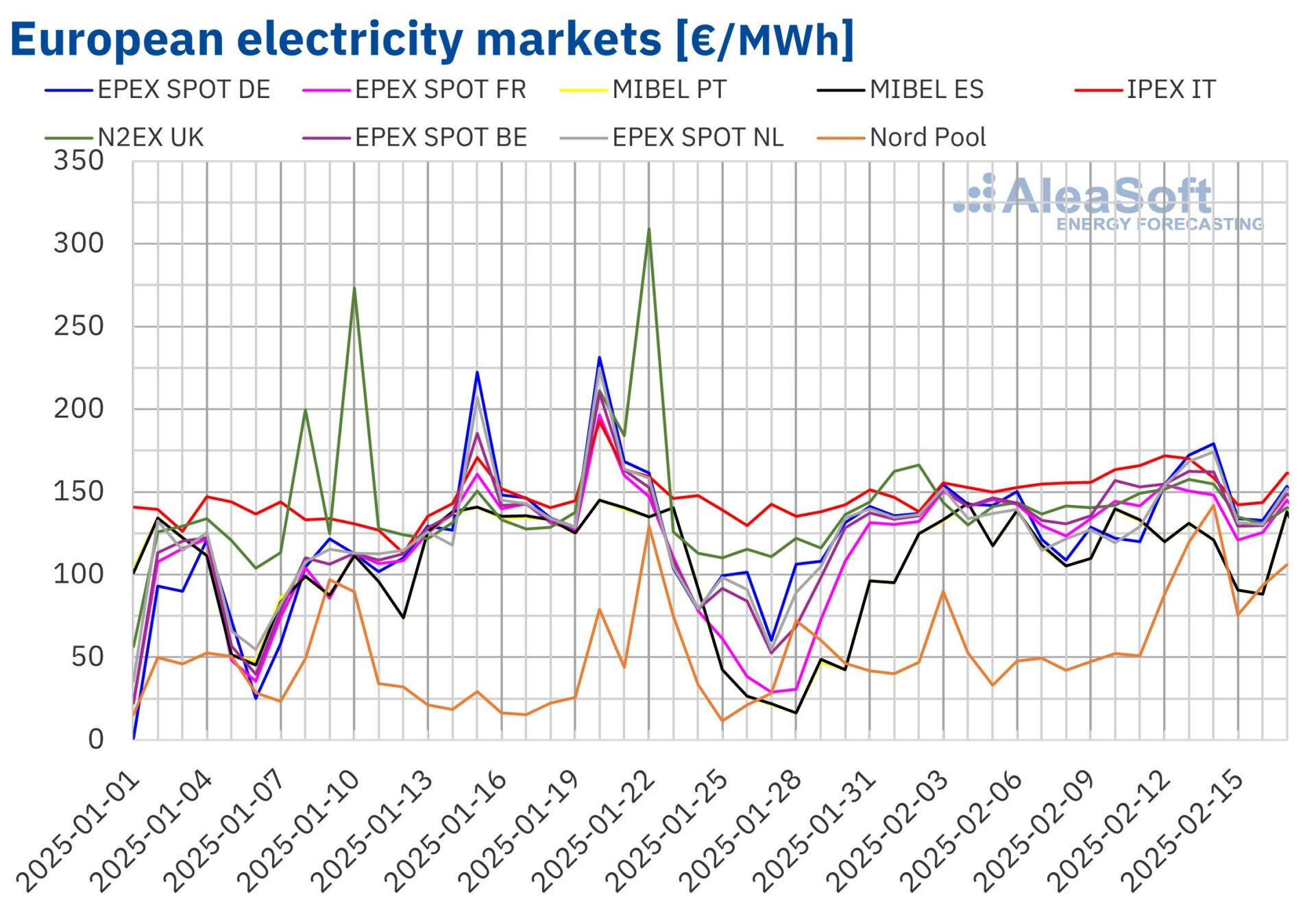 European electricity markets continued to rise in the second week of February