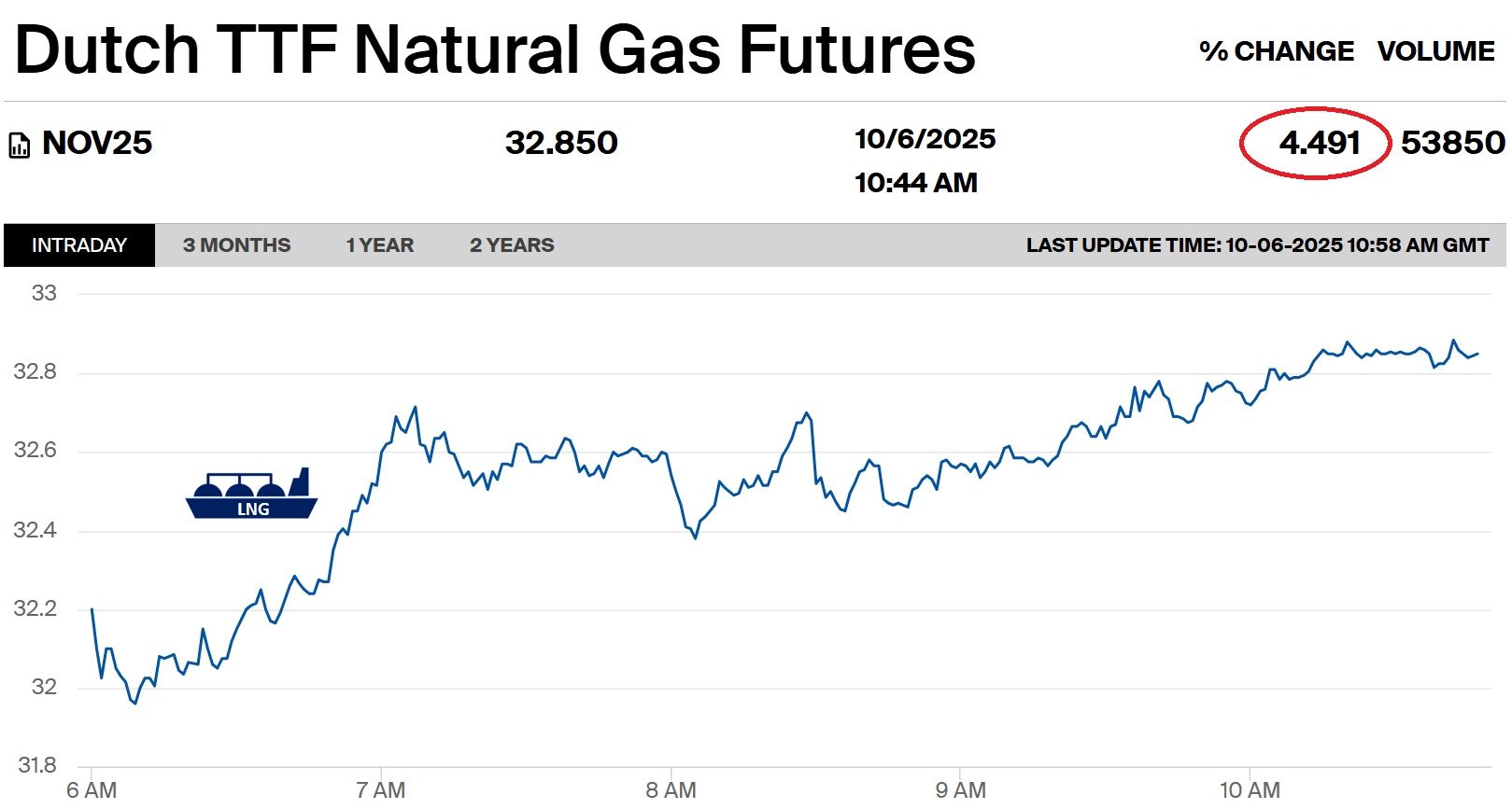 TTF prices drop below US LNG costs as the TTF–Henry spread tightens