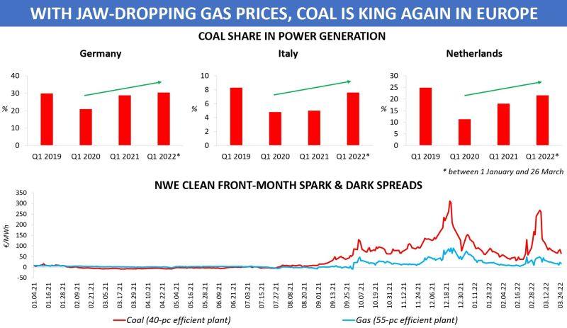 Record-high gas prices have provided perfect conditions for the renaissance in European coal power generation. Naturally, if there had been more nuclear capacity available in Germany for instance, the rise in coal-fired generation might have been somewhat more modest.