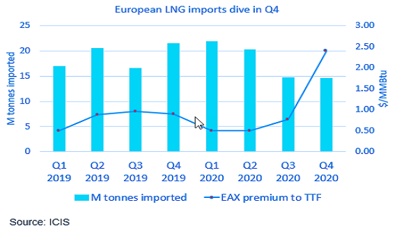 The ICIS TTF benchmark February ’21 market was trading at around $10/MMBtu on Tuesday afternoon, up by over 20% from Monday.