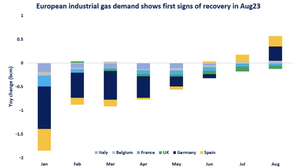 After being beaten to the ground in 2022, European industrial gas demand started to shows first signs of recovery in August23.