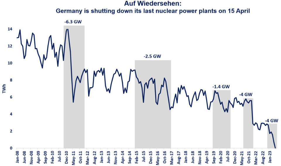 The closure of Germany’s three nuclear reactors is unlikely to have an immediate impact on price levels, this has been already incorporated along the forward curve.