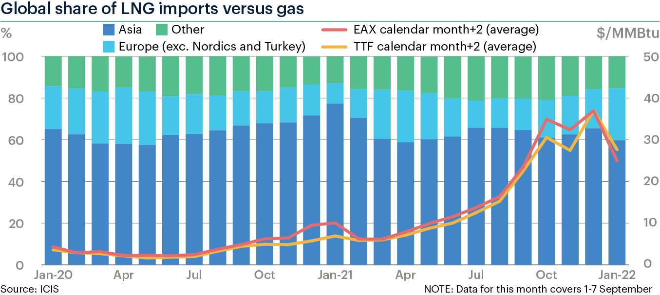 Easing demand led to Asia taking a smaller share of global LNG imports, accounting for 𝟱𝟵% in January, a nine-month low. This also marked a yearly drop of 18 percentage points.