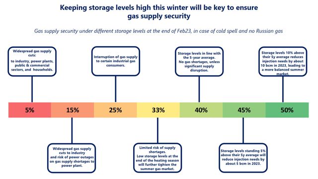 Storage levels above 45% would be necessary to reduce injections needs for the summer 2023, which could help to ease some of the market tensions.
