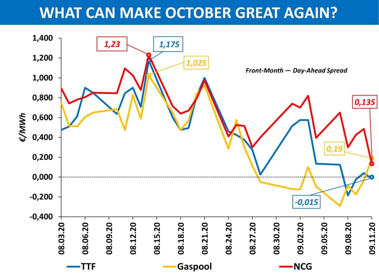 In terms of Front-Month-Day-Spread spread, European gas market has mostly reverted back to what was last seen in March. At that time COVID-19 was rapidly spreading across Europe and market players realized the pandemic’s impact on regional gas consumption during Q2.