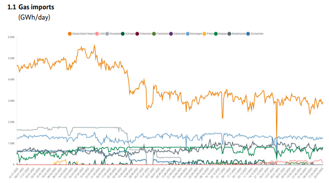 Gas consumption in the week beginning 13 March 2023 was 26.3% below the average consumption for 2018 to 2021 and down by 22.6% compared with the week before. Temperatures were 3.2°C higher than in the previous years.