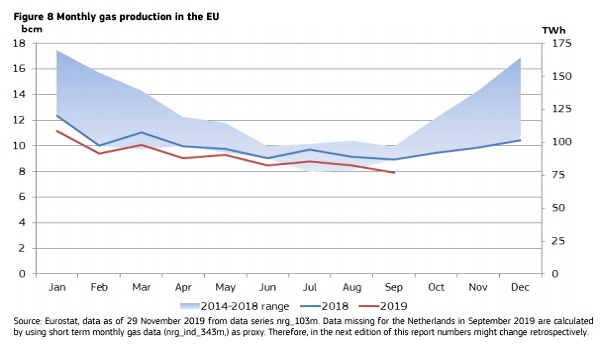 In the third quarter of 2019 EU gas consumption increased by 7% (5.3 bcm) in year-on-year comparison, mainly driven by increasing gas use in electricity generation (up by 20%)… Source : DG Energy
