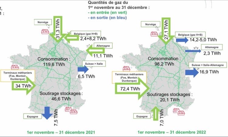 Natural gas flows have significantly changed in Europe in 2022. GRTgaz has published an update for the 2022-23 winter reflecting these changes for France. The report is in FRENCH but here are the highlights compliments of Luis Ignacio Parada In terms of flow changes from November 1 to December 31, 2022, compared to the period from November 1 to December […]