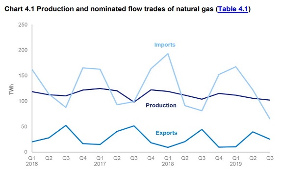 In the third quarter of 2019, pipeline imports fell by 37 per cent, following continued planned maintenance on Norwegian pipelines and reduced production. Source: Department for Business, Energy & Industrial Strategy