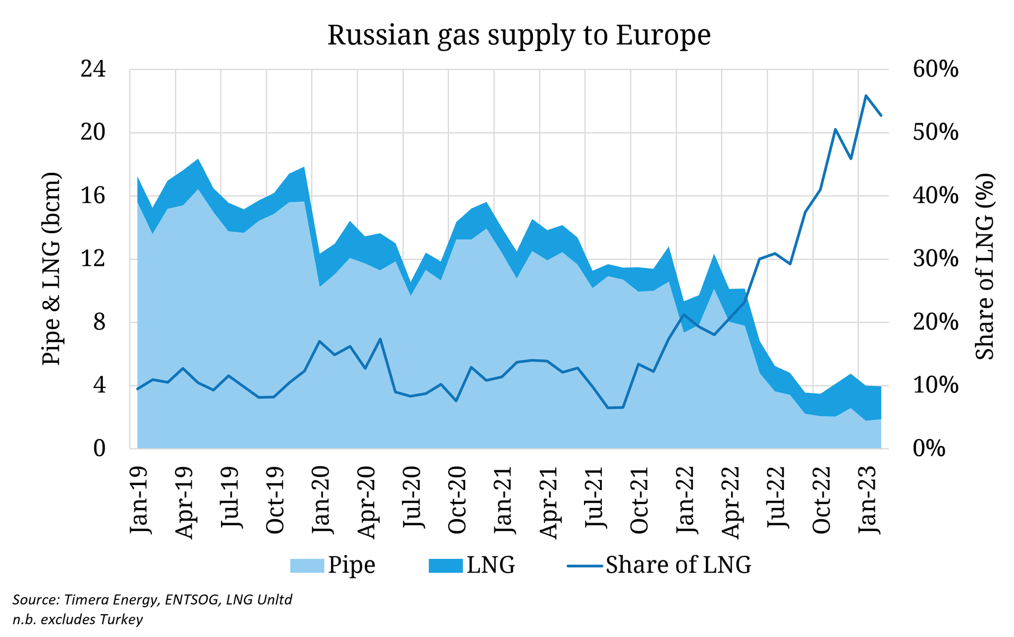 This comes as Russian LNG deliveries to Europe have made up over 50% of all Russian gas deliveries to the continent in the year to date, having increased by 4.2 Bcm y-o-y in 2022.