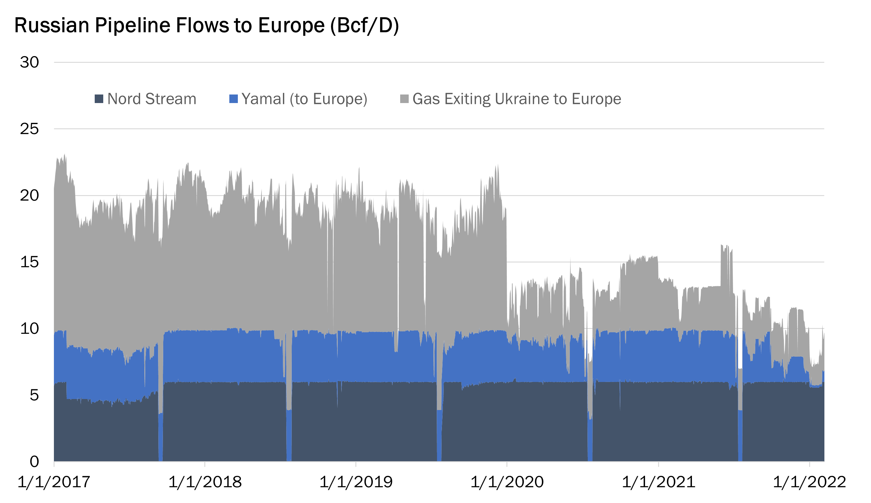 Since the start of 2020, Russian flows to Europe have decreased by ~50%, with the majority of volumes through the Yamal Pipeline and through transit points in Ukraine facing significant declines.