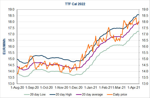 The rise in parity prices with coal for power generation (both EUA and coal prices were up) provided additional upward pressure, particularly on curve prices.
