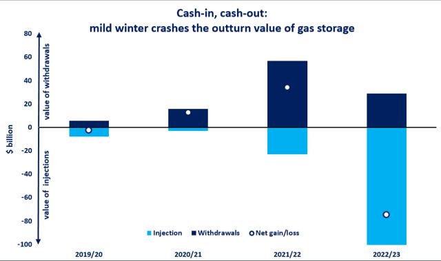 Altogether, the value of gas withdrawals this winter could be just one-third of the value of net injections over the summer 2022, translating into a hefty loss of $75 billion…