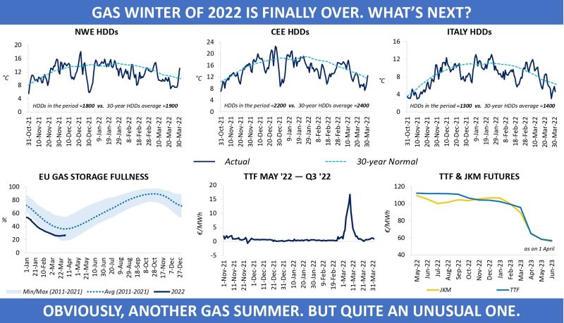 2021/22 gas winter at last came to an end and one would think that the European gas market can heave a big sigh of relief. But with the onset of injection season you can hardly expect Q2 and Q3 to become less busy than the winter months, with the summer 2022 shaping up to be very eventful.